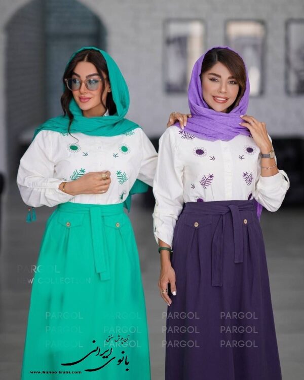 شومیز دامن گلی را می توانید از شعبات فروشگاه بانو ایرانی به صورت حضوری و اینترنتی خریداری فرمایید.