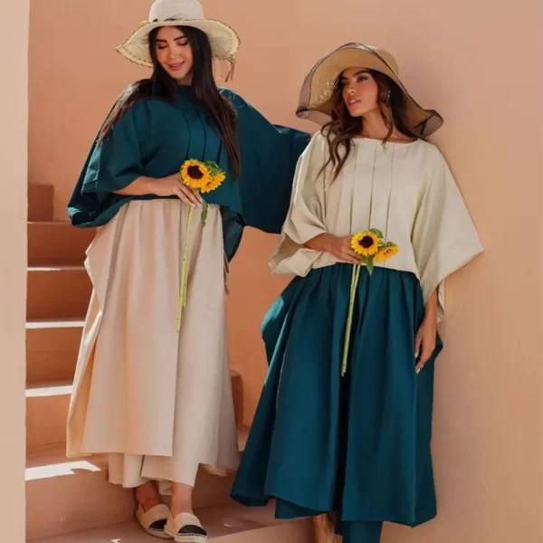 رنگ دامن شلوار و شومیز را می توان به صورت متفاوت ست کرد.
